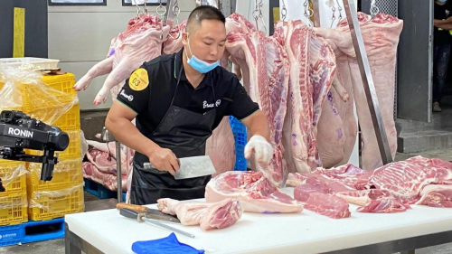 现场紧张热烈,竞赛精彩纷呈:商品打包有技巧、猪肉分割快准狠、蔬果粗加工妙招迭现……
