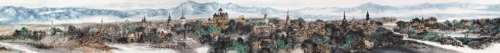 据了解,尹芳娜师承国家一级美术师、心象重彩山水画大师江爱松,作品风格用传统的艺术手法,表现现代观念;用现代的艺术语言,诠释亘古的艺术规律。从继承传统文人画侧重恬淡情趣的田园风光,到吸收西方现代艺术重色、重形、重彩,再回归到东方意境和情趣,追求一种“静”与“净”的东方意境和 “真”与“幻”的西方理念,创造一种既具有传统韵味又具时代活力的中国“心象重彩"山水画。在基本写实的基础上,融入写意手法。长卷中不同国家风情各异,要绘入同一幅长卷,就得形成相对统一的意象表达,充分运用中国画特有的绘画语言,将每一个国家串联起来,达到步移景异的效果。尹芳娜在绘画颜料的选用上也非常考究,用绿松石、青金石、孔雀石等宝石研磨出的颜料作画,让画作色如宝石般光彩照人、永不褪色。
