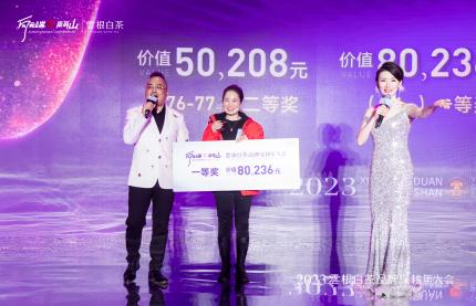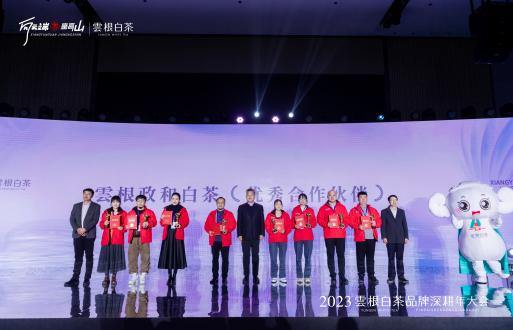 在云根这几年高速高速发展的历程中,涌现出了一大批优秀的经销商群体,云根精心准备了奖杯和丰厚的礼品,大会上,主持人宣读2023年云根政和白茶推介官“卓越贡献奖”“年度新星奖”“优秀合作伙伴”,并逐一揭晓获奖名单进行颁奖,全场掌声雷动,此起彼伏!