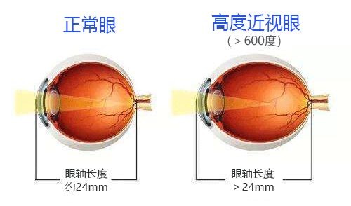高度近视并不仅仅只是近视度数比较高那么简单。大部分的近视都是轴性近视,高度近视的眼轴通常都在26mm以上,当得不到有效控制时,眼轴还会不断快速增长,就像一个气球,气吹得越多气球越大,气球壁就越薄,眼球壁变薄等眼结构变化,导致眼睛出现问题的几率增高,眼部并发症随之而来。