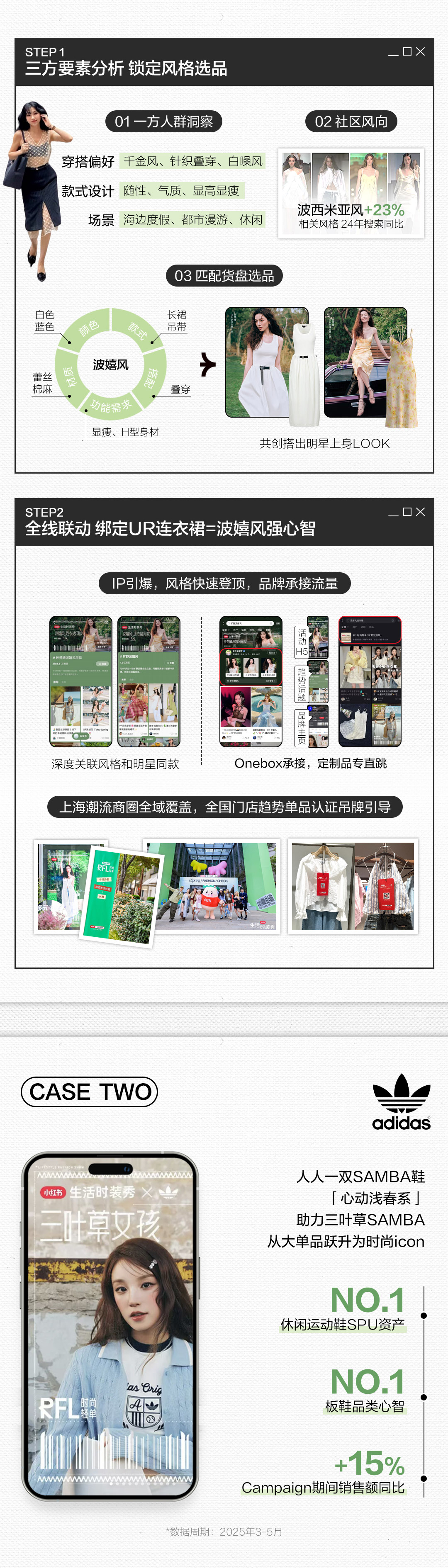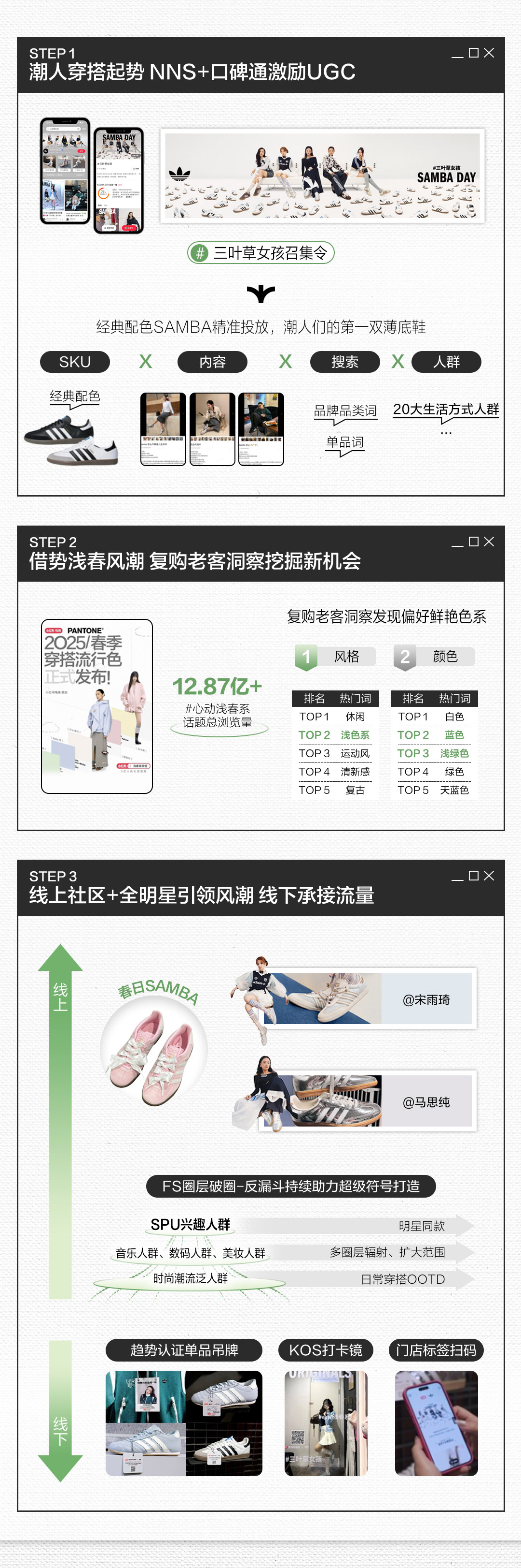 UR打破快时尚品类心智同质化,共创「波嬉风」辐射连衣裙全线生意,助推品牌声量口碑大丰收;「心动浅春系」助力三叶草SAMBA,从大单品跃升为时尚icon;优衣库通过风格种草升级,连续两季打爆上新系列,让「春日慢人风」演绎时尚慢生活。