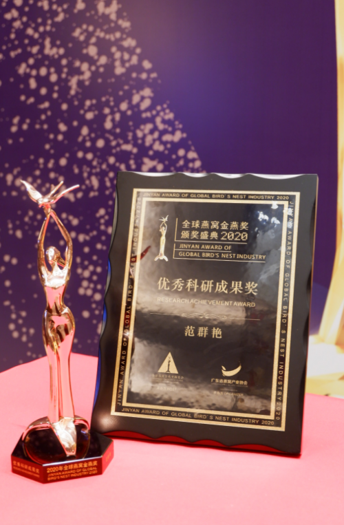 范群艳积极主动带领团队进行燕窝相关研究项目,推动产生众多优秀科研成果,为燕窝产品的创新发展做出杰出贡献。在“2020年度全球燕窝金燕奖”颁奖典礼,范群艳荣获“优秀科研成果奖”;在2020第四届中国食品产业发展年会,范群艳作为主要完成人之一的项目——《即食燕窝系列产品的关键技术创新及其产业化》荣获“中国食品工业协会科学技术奖特等奖”。怀揣着对燕窝事业的执着追求和满腔赤忱,范群艳潜心专研,斩获了诸多行业荣誉,取得协会认可;同时,作为燕之屋副总经理、研发总监,范群艳以自身专业的研发能力带领科研团队,扎实做好技术和产品工作,不断打磨提升品牌的核心竞争力,为市场提供更专业、更优质的燕窝产品,推动燕窝行业的高质量发展。