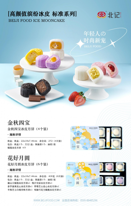2022中秋节,北记食品以20年食品研发和生产经验,从健康食材和制作工序中汲取灵感,推出高颜值冰皮月饼!“北记高颜值冰皮月饼”是福建北记食品旗下最新推出的应季系列产品。北记冰皮月饼秉承了北记食品一贯的高颜值,高品质,多层夹心馅料搭配上冰激凌一般清凉细腻的口感,让每一口都Q弹香糯,八种缤纷口味,更是满足不同人群所需。