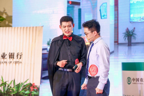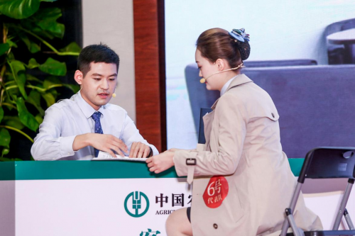 在第二轮自主选题中,选手们围绕“建功十四五 奋进新征程”竞赛主题,开展银行特色服务展示。