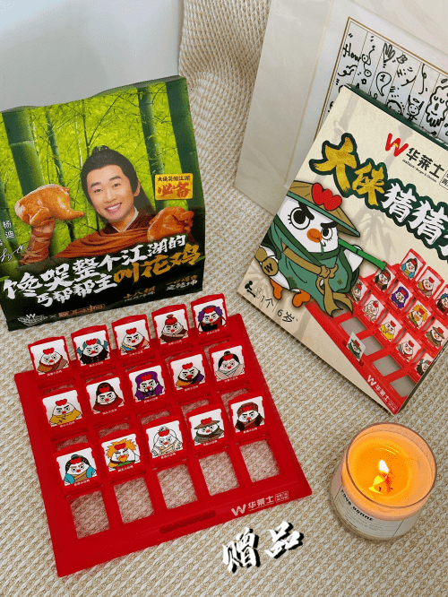 不仅如此,在叫花鸡新品上市活动期间,无论是你是在线下门店,还是在线下平台购买“笑傲江湖聚餐7件套”、“笑傲江湖吃鸡餐”等新品活动套餐,均可以获赠华莱士专属定制的互动桌游卡牌游戏“大侠猜猜猜”玩具一份 ,无论是亲子互动、儿童益智,还是朋友聚会,和华莱士一起“猜起来”,为“吃鸡”带来更多欢乐。