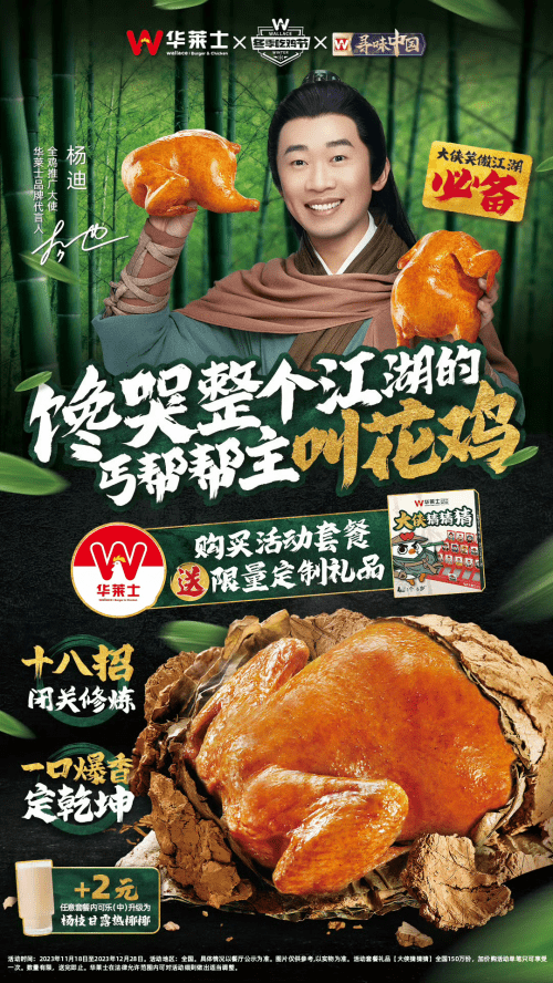 2023全国第二届国民吉祥物运动会期间,华莱士也将为用户带来非常多的“吃鸡”优惠和活动。在活动期间,在华莱士小程序下单“笑傲江湖聚餐7件套”、“笑傲江湖吃鸡餐”等超高性价比活动套餐,可以获赠华莱士专属定制的互动桌游卡牌游戏“大侠猜猜猜”玩具一份;12月16日比赛当天,华莱士也将在抖音和美团外卖上进行直播,并推出多款特价促销产品,“鸡不可失”,华莱士2023全国第二届国民吉祥物运动会好玩、好吃,千万不能错过哦~