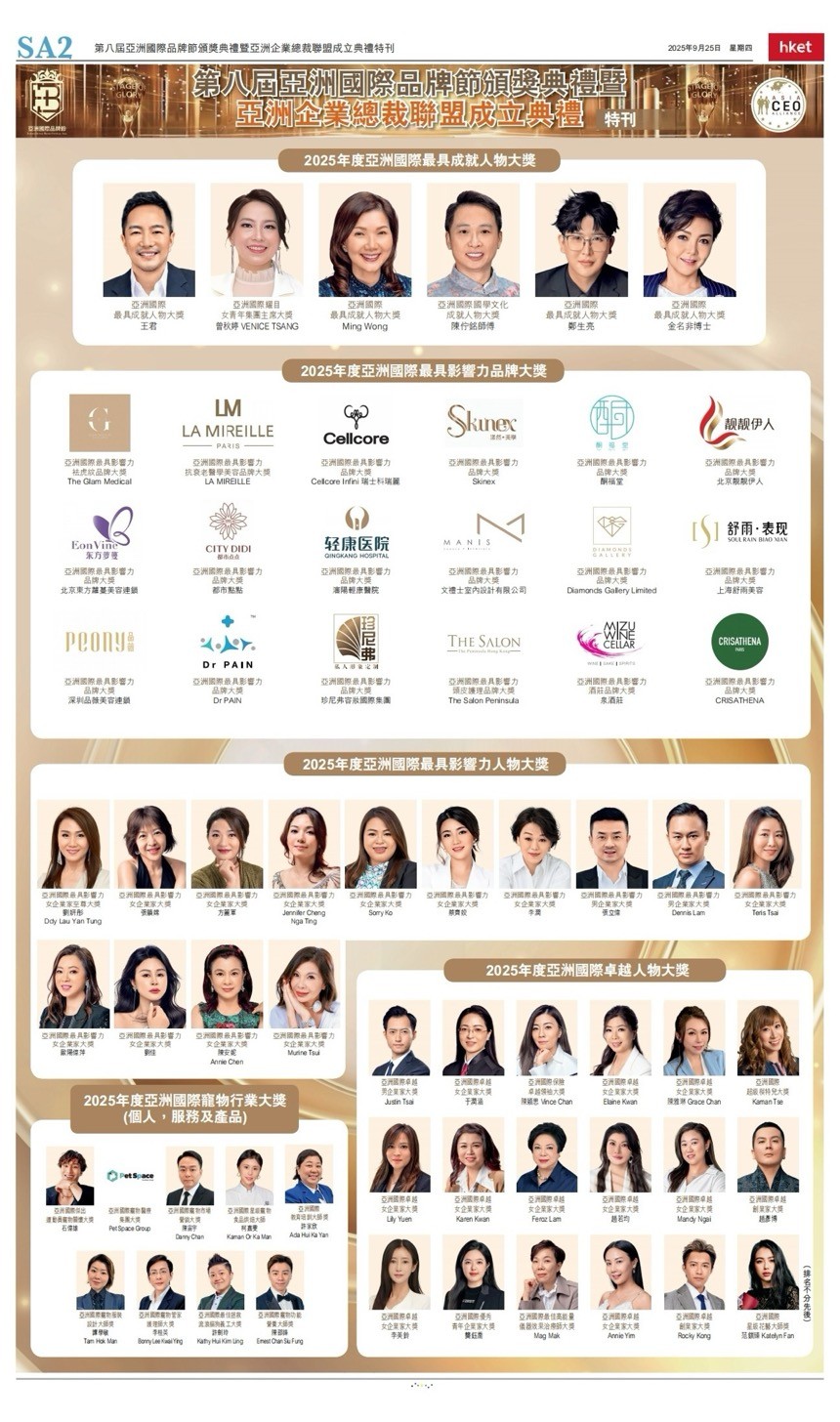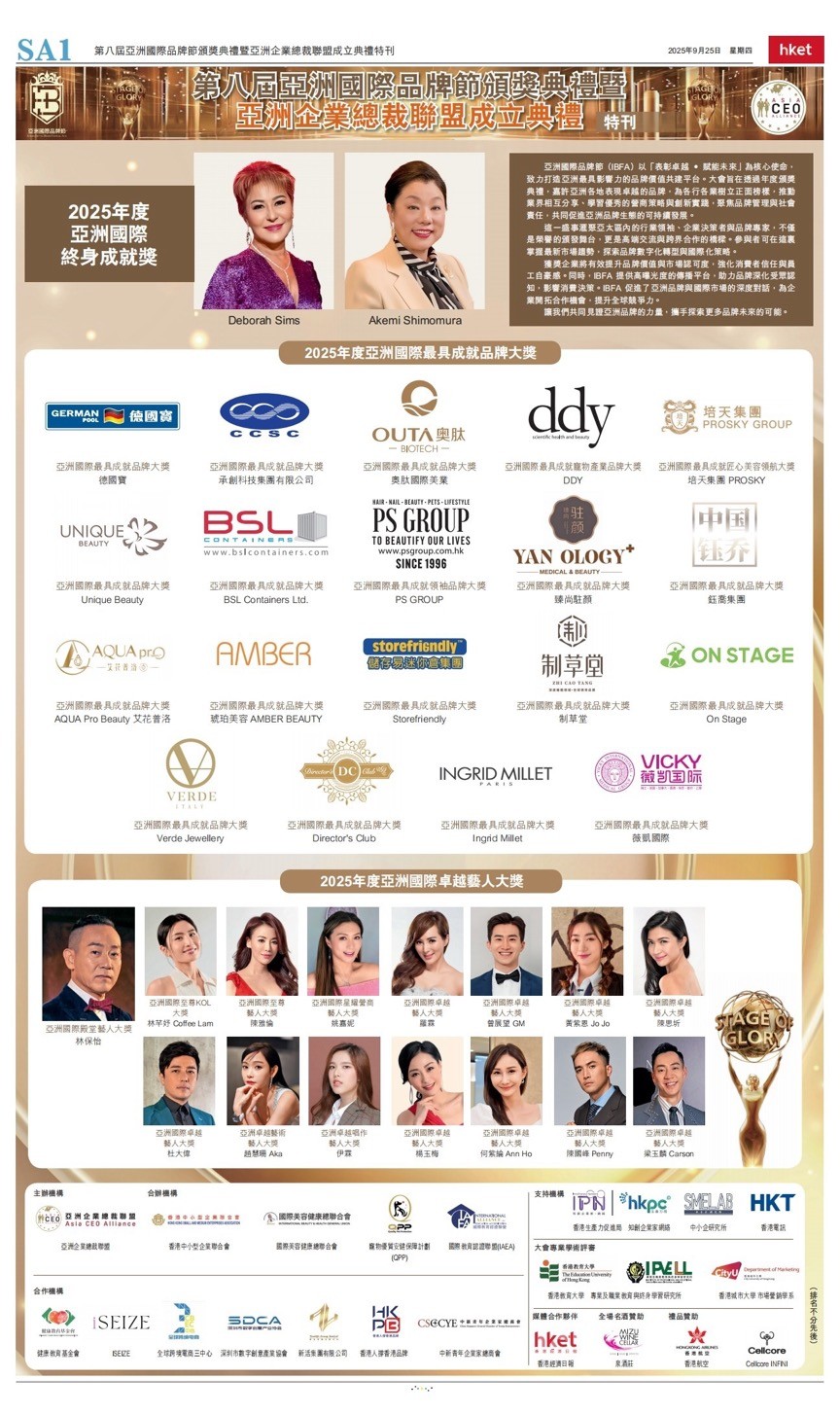 - 2025-10-22 第八届亚洲国际品牌节颁奖典礼在港举行 亚洲企业总裁联盟即将启航